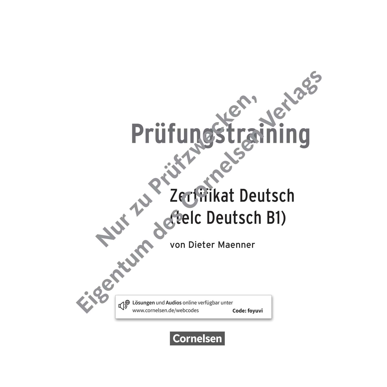 Die Audiodateien, Lösungen, Transkripte der Hörtexte sowie die für die Prüfung relevanten Wortfelder sind bequem als Download auf cornelsen.de/codes verfügbar.